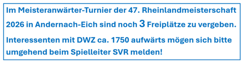 Der Schachverband Rheinland e. V. trauert um seinen Schatzmeister Claus-Peter Schneider, der Ende August plötzlich und unerwartet im Alter von 58 Jahren verstorben ist.