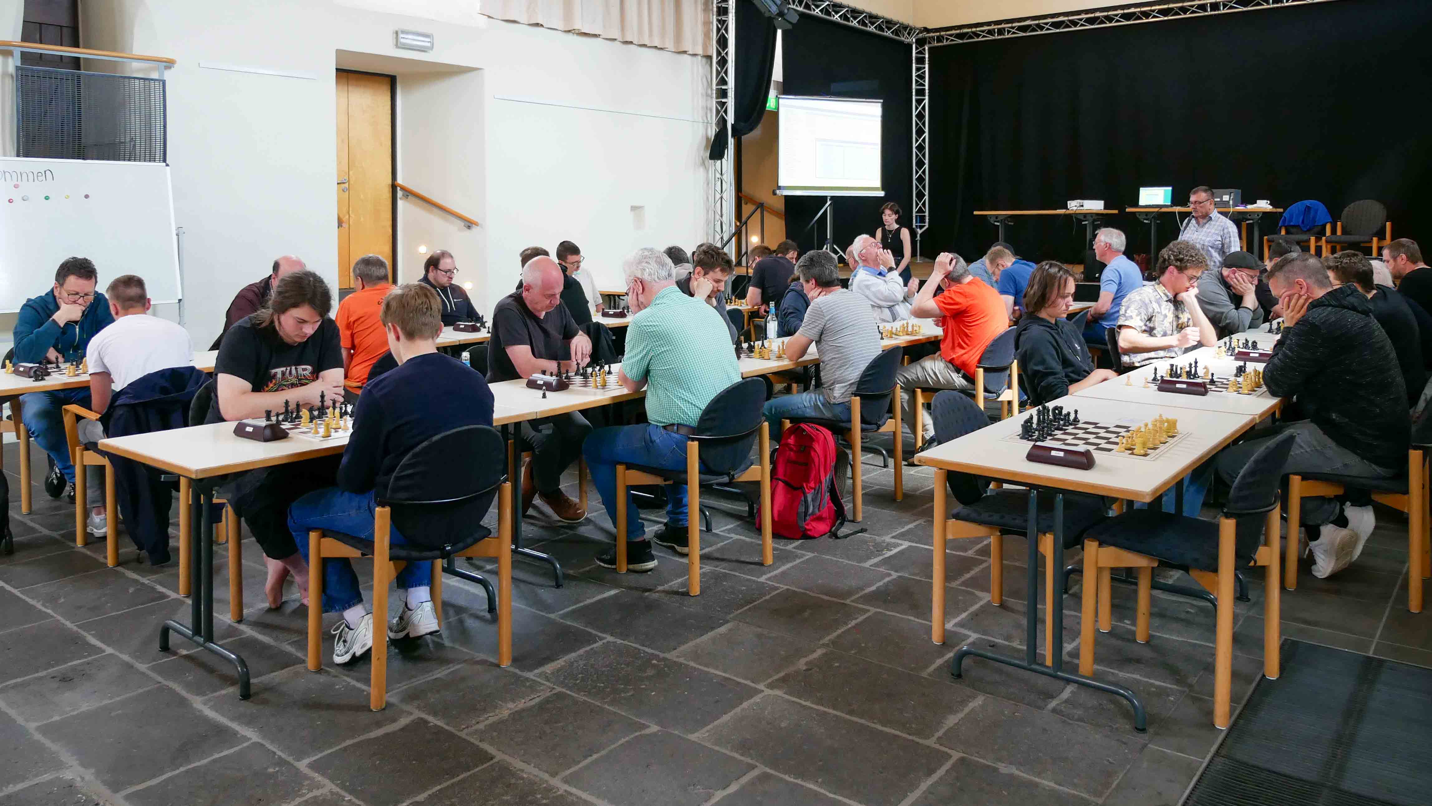 Zum vierten Mal in Folge wurde die Meisterschaft vom SC Cochem ausgerichtet – erneut im historischen Klostersaal des Kulturzentrums Kapuzinerkloster hoch über der Altstadt von Cochem. Trotz einer etwas geringeren Teilnehmerzahl von 33 Spielern war die Atmosphäre durchweg positiv.